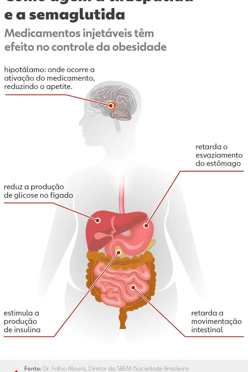 A tirzepatida age no controle da taxa de açúcar no sangue e do peso de pacientes. De acordo com a fabricante, ela é a primeira medicação disponível e aprovada capaz de atuar nos receptores dos dois hormônios que agem no controle do apetite.