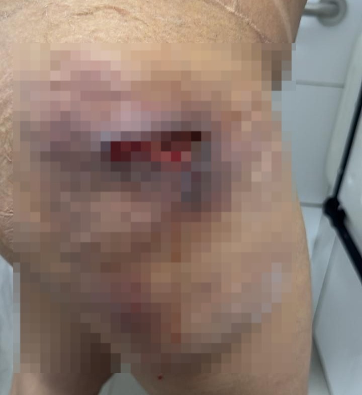 Uma imagem encaminhada à reportagem do TNH1 (veja abaixo) mostra que uma das vítimas apresentou graves lesões no glúteo e na perna após realizar um procedimento estético com a profissional.