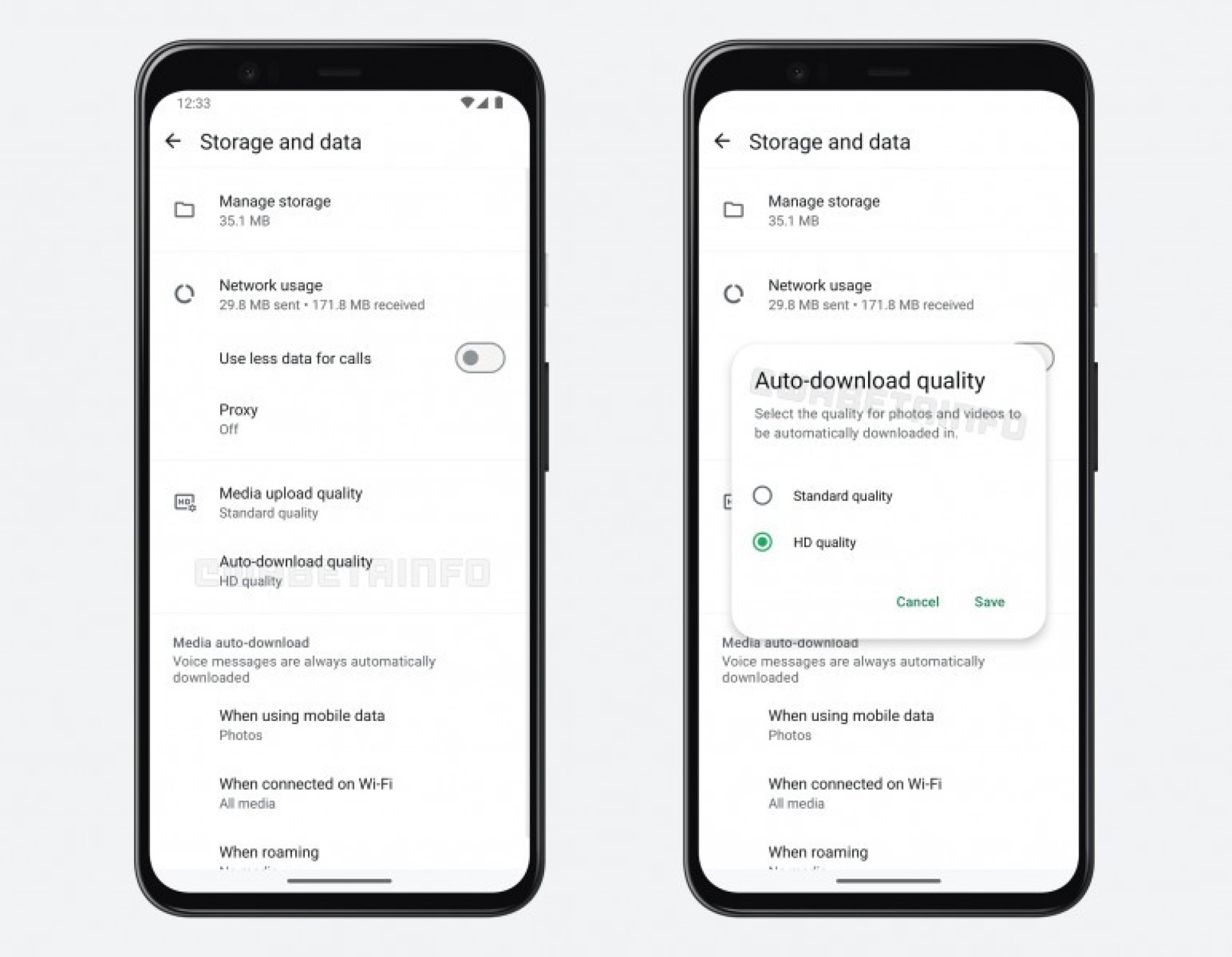 Os usuários que já tenham acesso a esta funcionalidade podem encontrá-la na área de Armazenamento e dados nas Definições do app. Caso já tenham esta funcionalidade, os usuários terão a opção de fazer o download de fotografias e vídeos em qualidade ‘standard’ ou ‘HD’.
