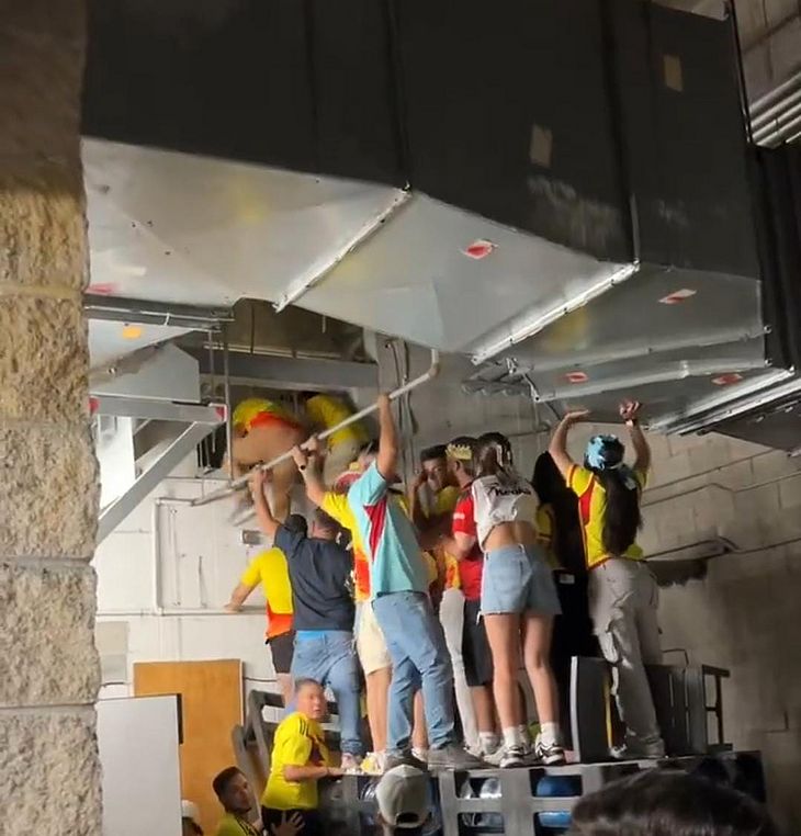 Em um vídeo que circula nas redes sociais, houve flagrante de suposto torcedores da Colômbia tentando invadir o estádio pelo duto de ventilação.
